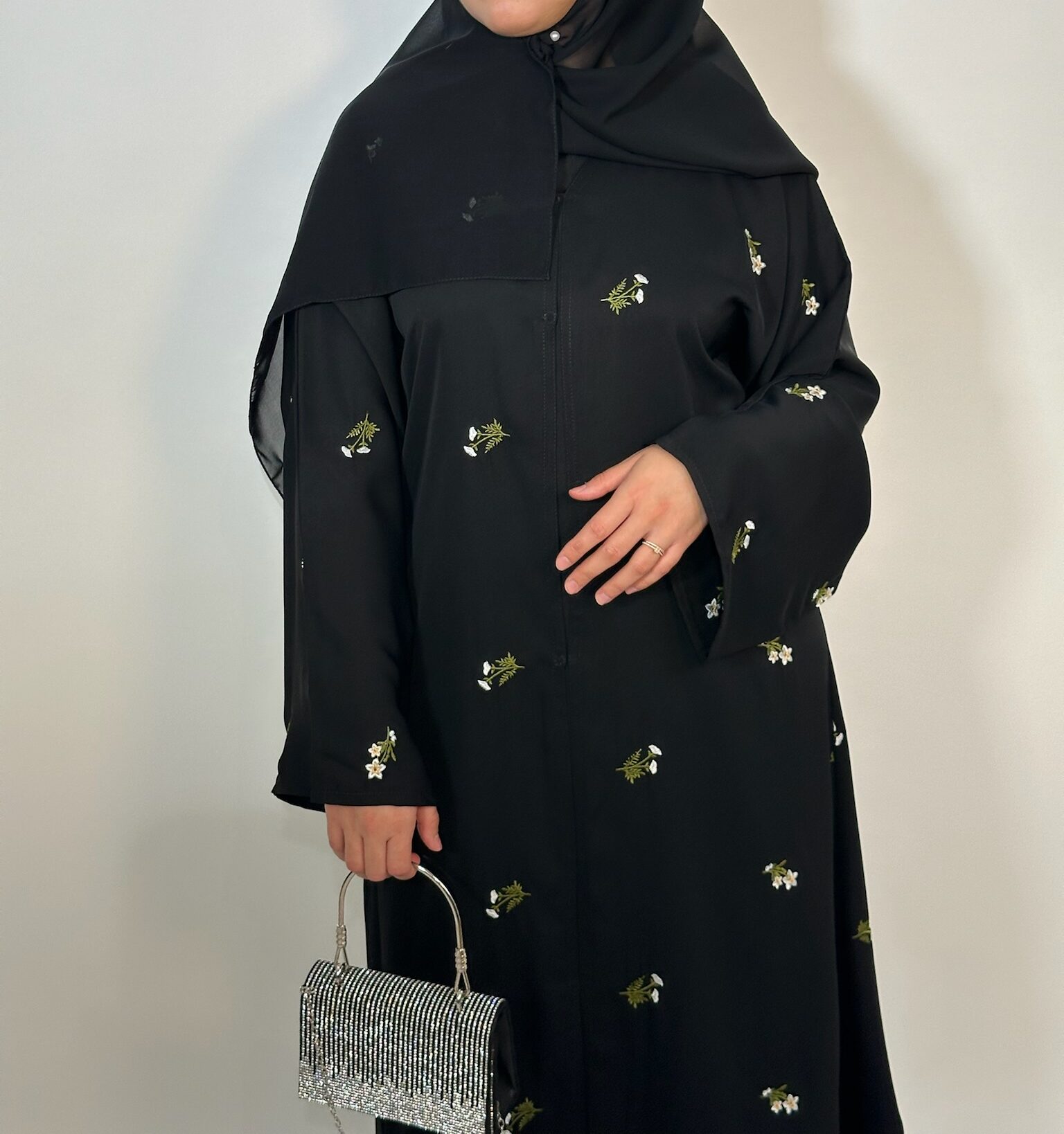 Optez pour cette abaya nude brodée femme, alliant élégance et modernité. Confectionnée dans un tissu fluide et léger, elle offre un tombé naturel et un confort optimal. Ses délicates broderies florales vert et blanc apportent une touche raffinée tout en restant discrètes.